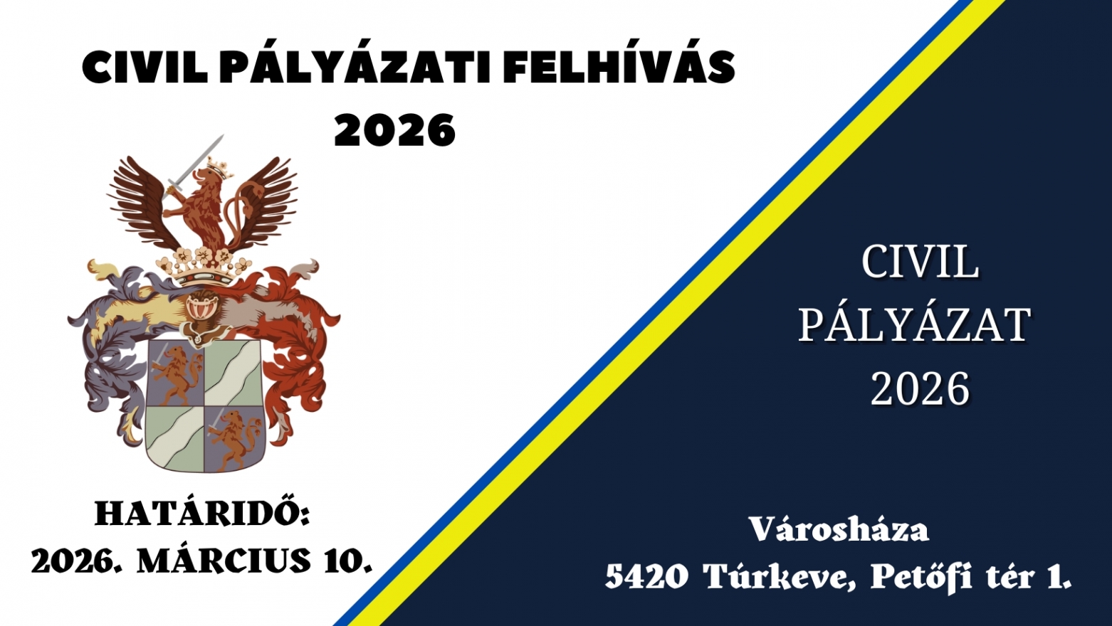 A Túrkeve Városi Önkormányzat a 28/2025. (XI.28.) sz. rendelete alapján 2026. évre pályázatot ír ki civil szervezetek és önszerveződő csoportok, közösségek támogatására.